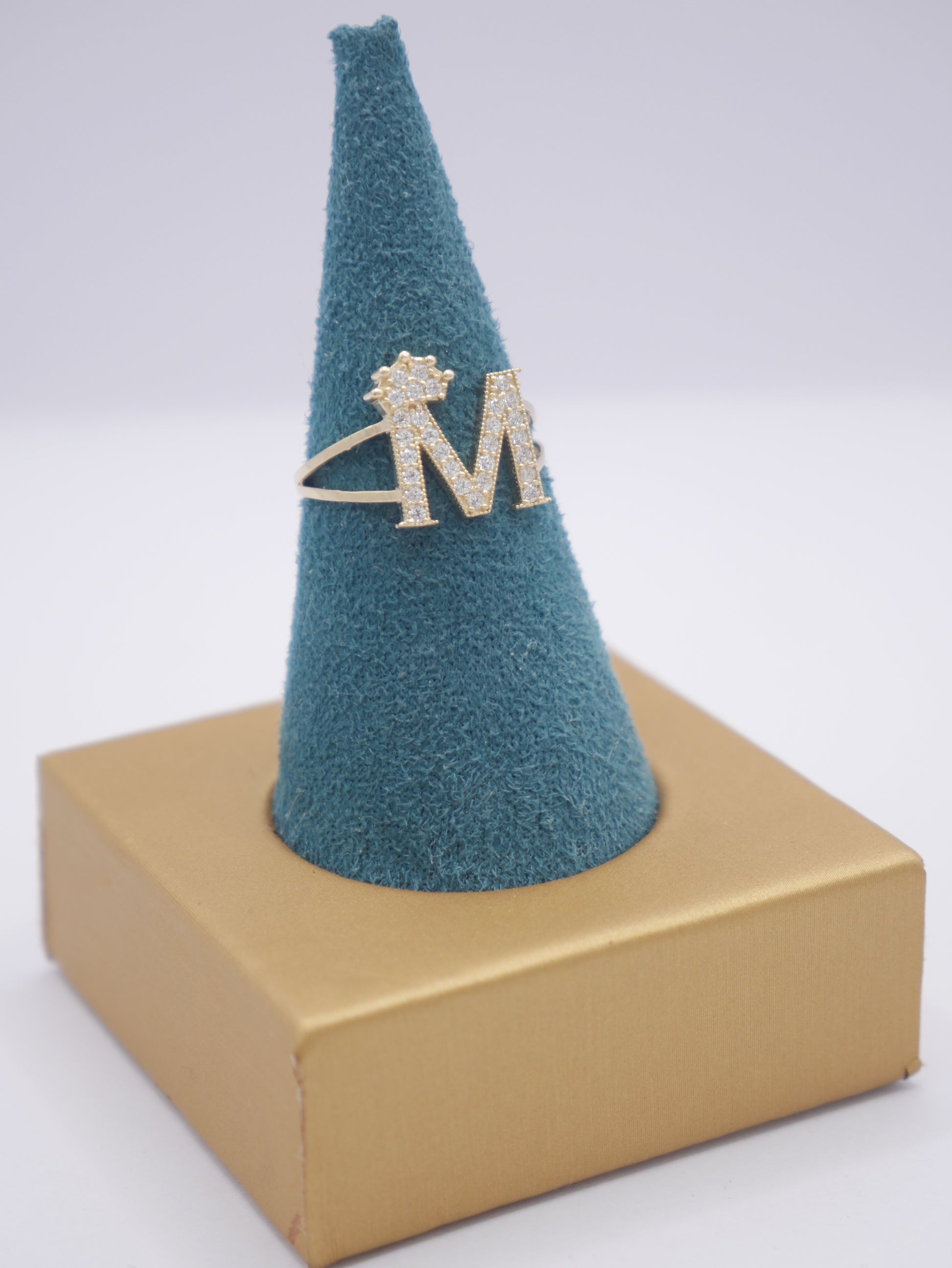 New 14K CZ Initial M Gold Ring I.J™
