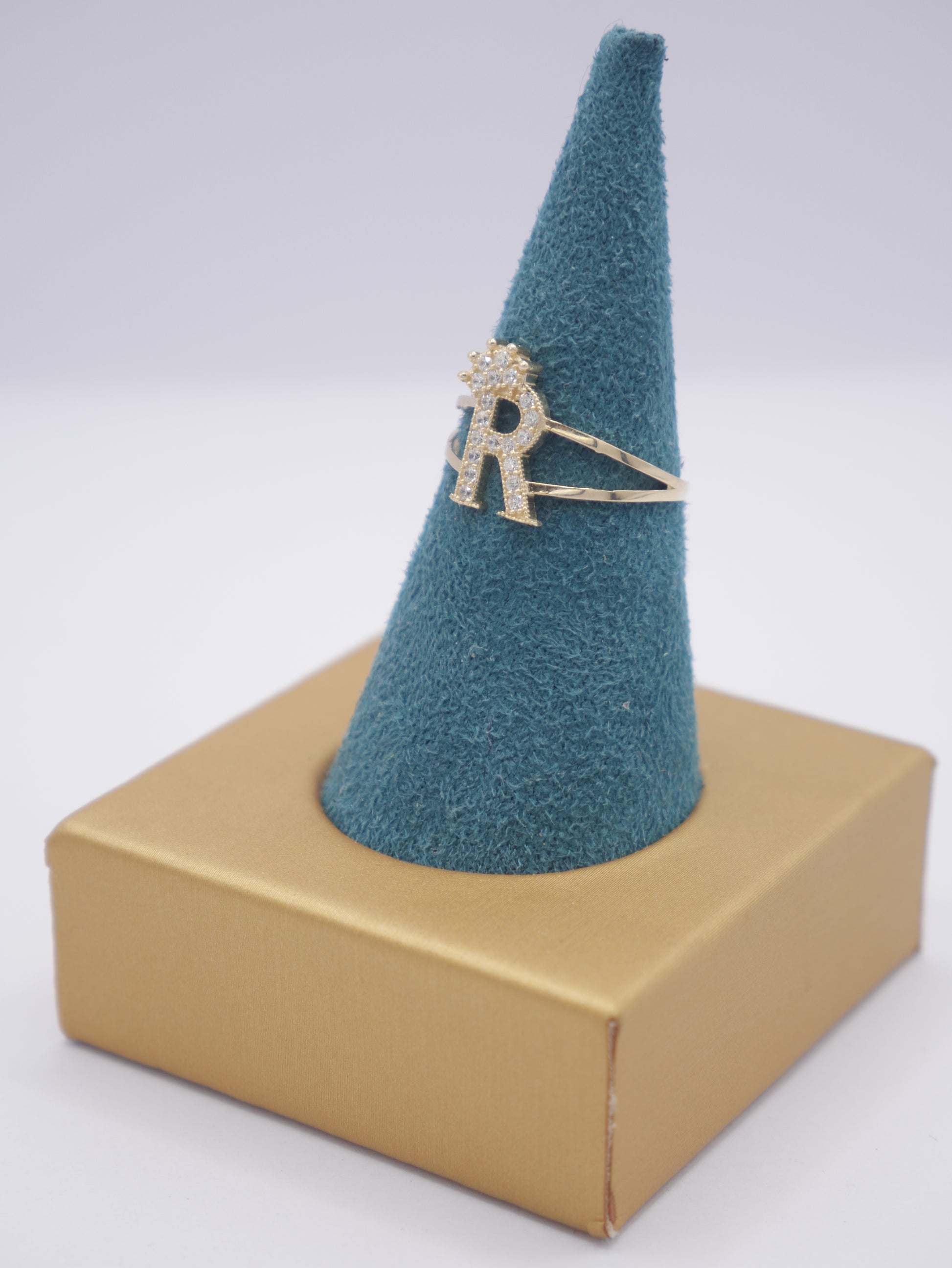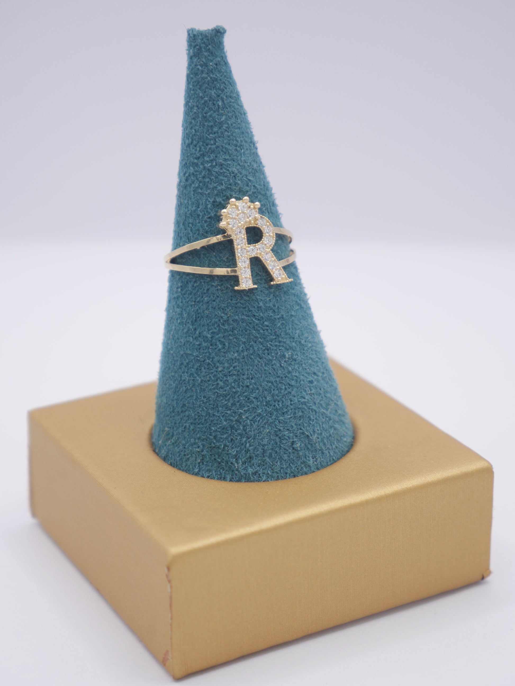 New 14K CZ Initial R Gold Ring I.J™