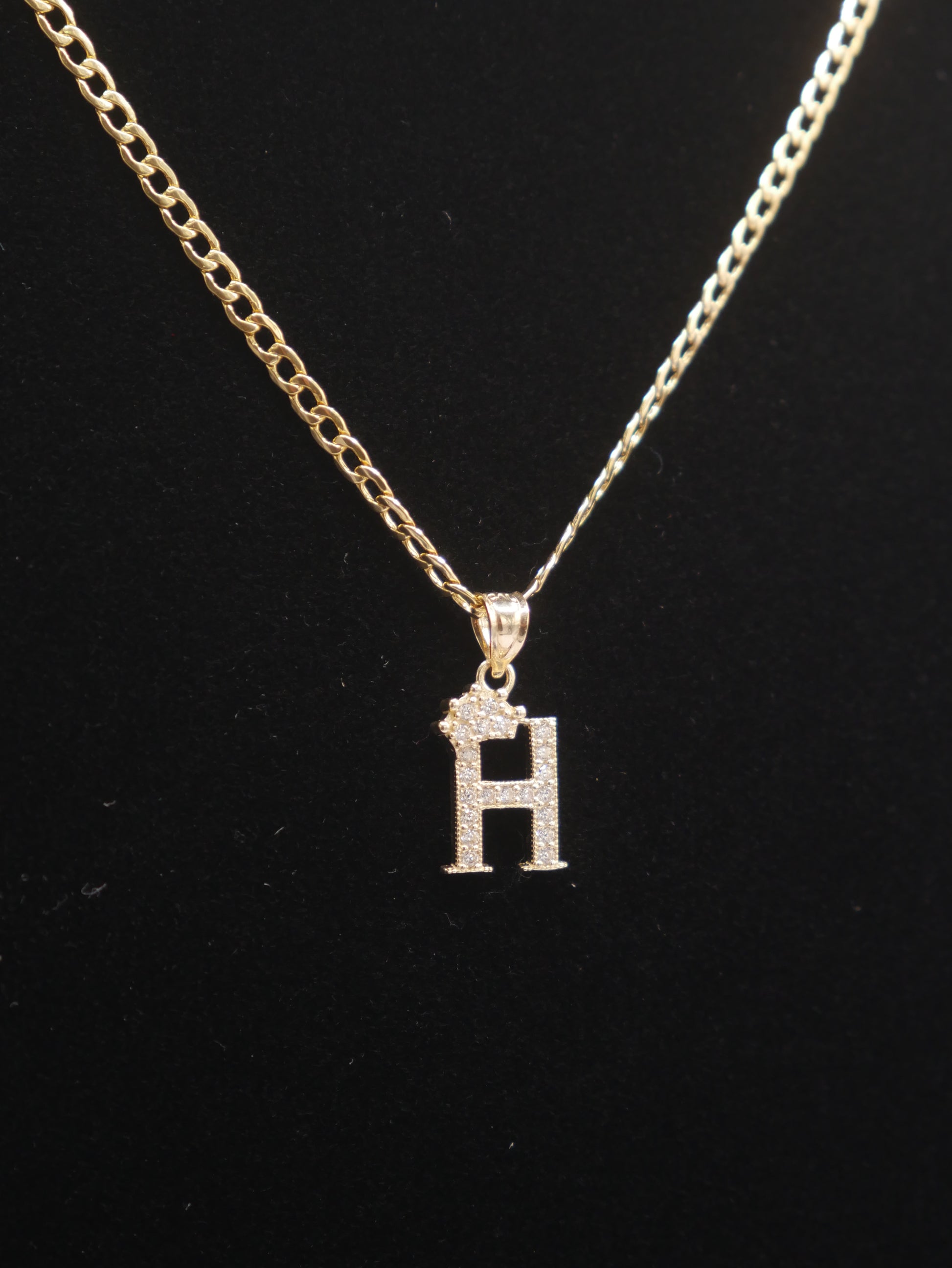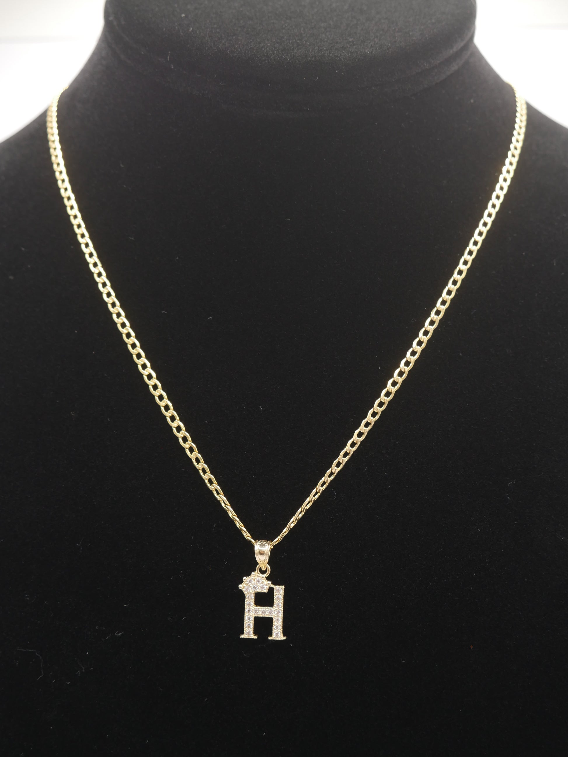New 14K CZ Letter H And Cuban Chain I.J™
