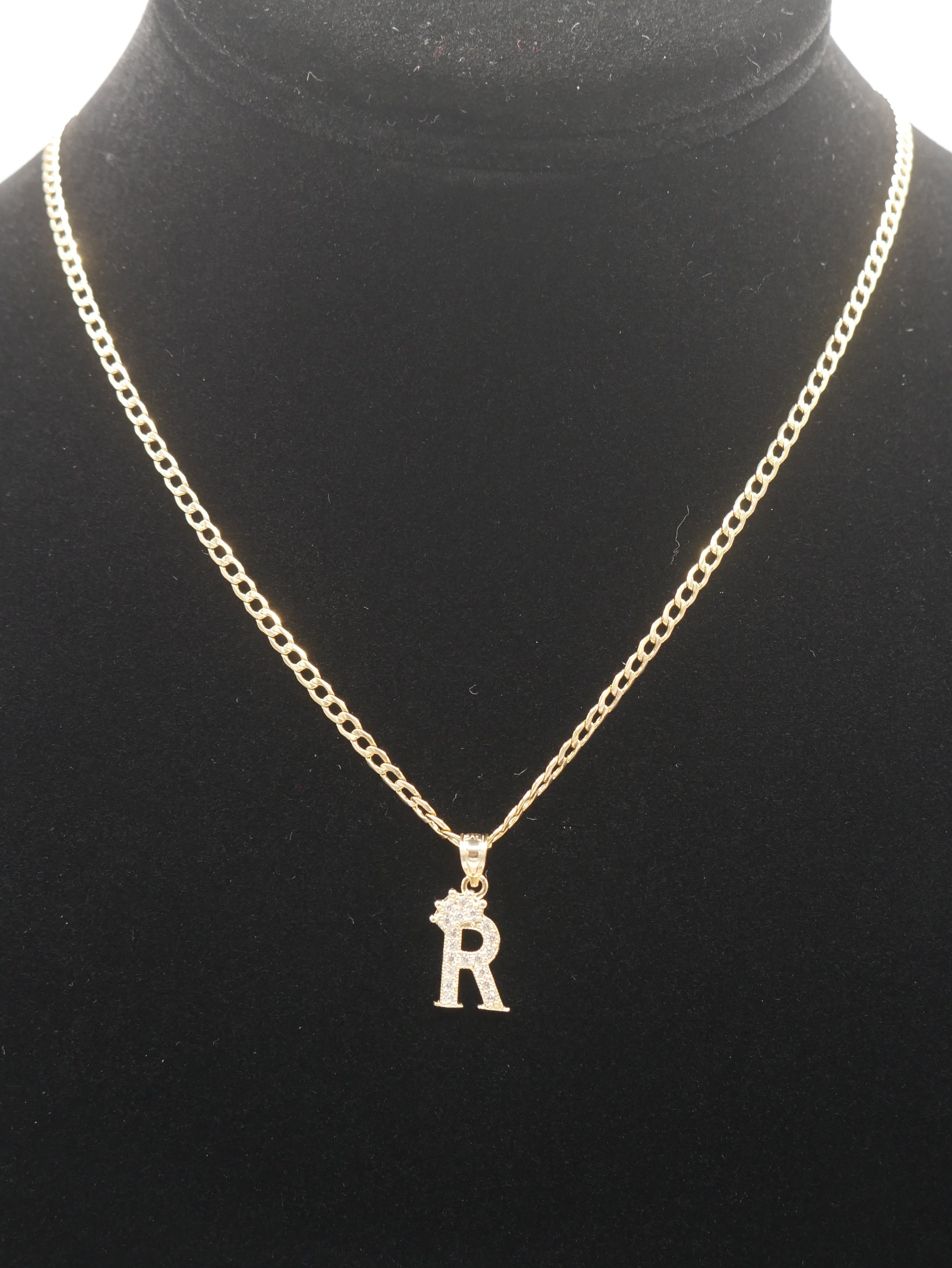 New 14K CZ Letter R And Cuban Chain I.J™
