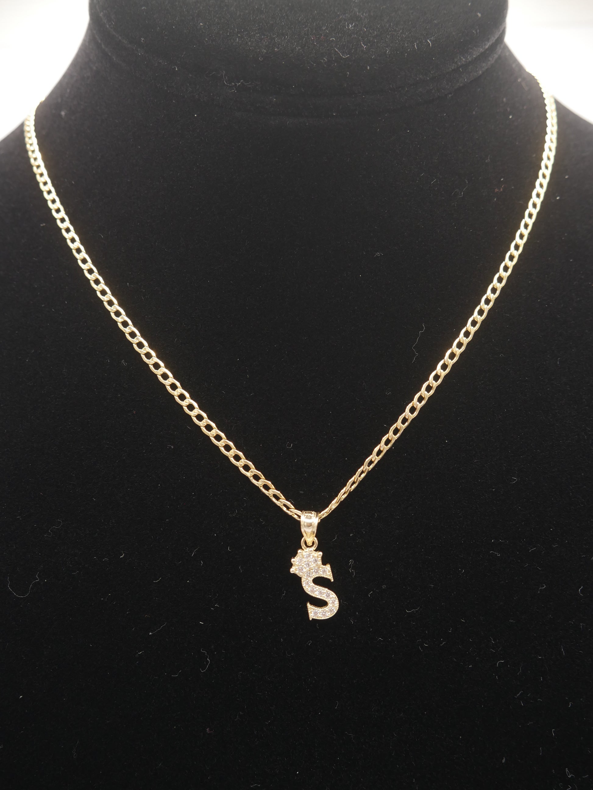New 14K CZ Letter S And Cuban Chain I.J™
